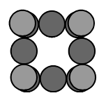 Stack two pennies on top of each other for each of the four corners, then place one penny between each corner